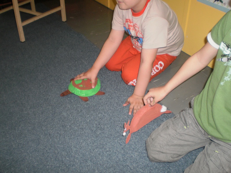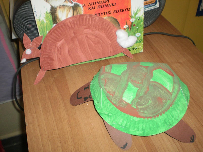 Φτιάξαμε το λαγό και τη χελώνα χρησιμοποιώντας χάρτινα πιάτα.