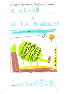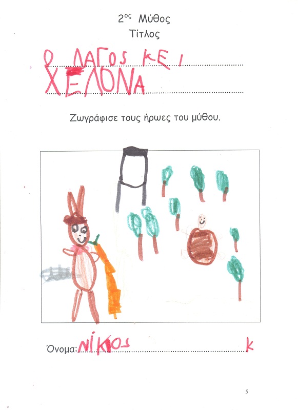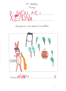 Συνεχίσαμε με το μύθο και γράψαμε τον τίτλο και ζωγραφίσαμε τους ήρωες.