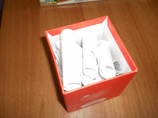 Μετά χωριστήκαμε σε 5 ομάδες σύμφωνα με το χαρτάκι που πήρε ο καθένας από ένα κουτί.