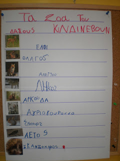 Σαν συνέχεια των Μύθων του Αισώπου ( θα είναι το θέμα της καλοκαιρινής γιορτής του σχολείου μας), και με αφορμή τους ήρωες που μέχρι τώρα γνωρίσαμε μέσα από αυτούς, μιλήσαμε για τα ζώα του δάσους.