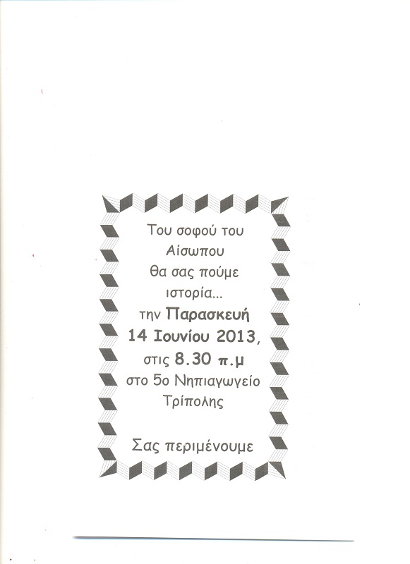 Πρόσκληση γιορτής "Οι μύθοι του Αισώπου"